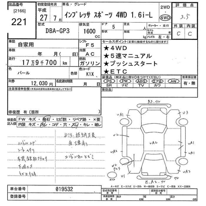 Subaru Impreza, 2015 года - Лот№221 ★3.5