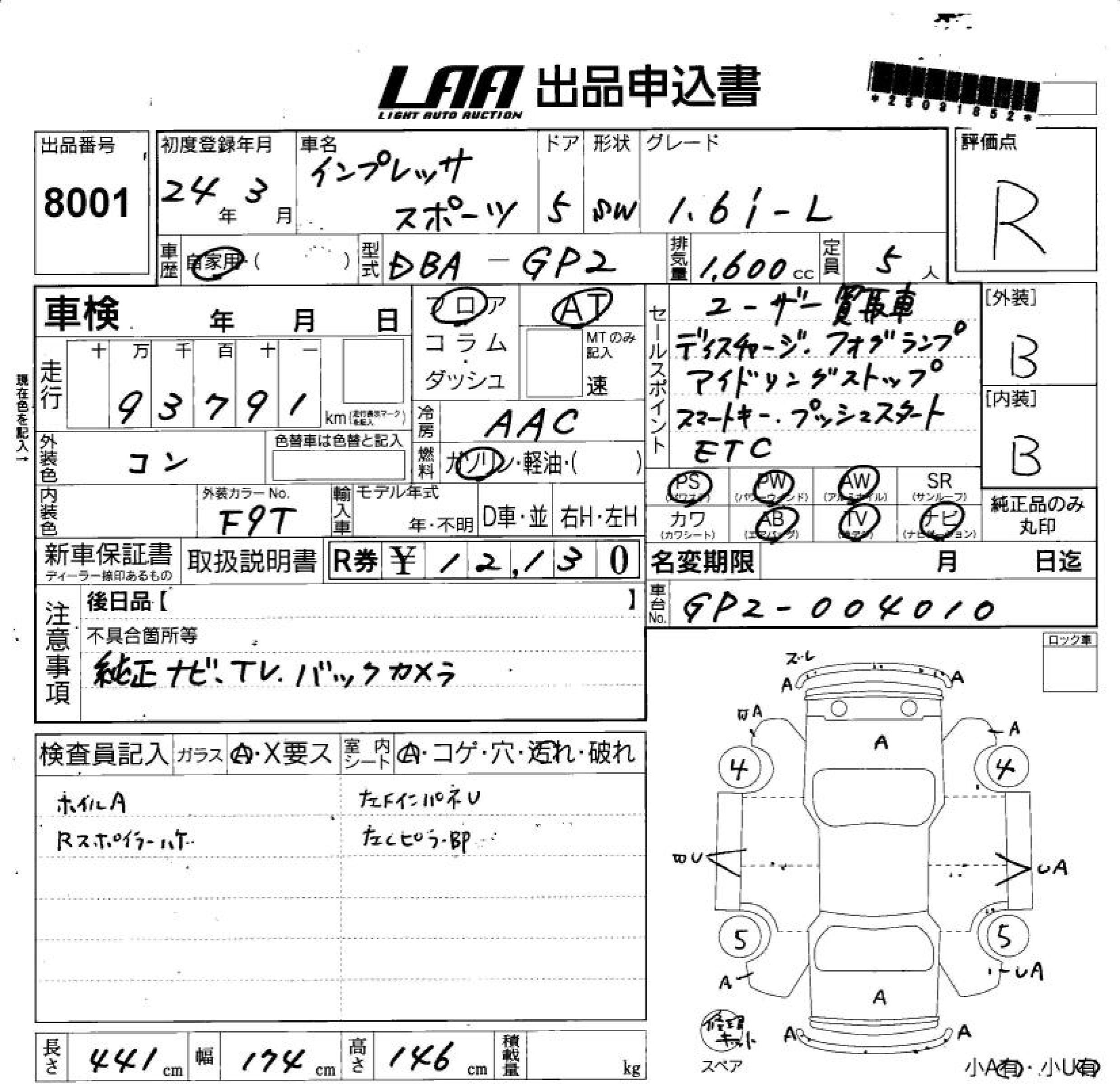 Subaru Impreza, 2012 года - Лот№8001 ★R