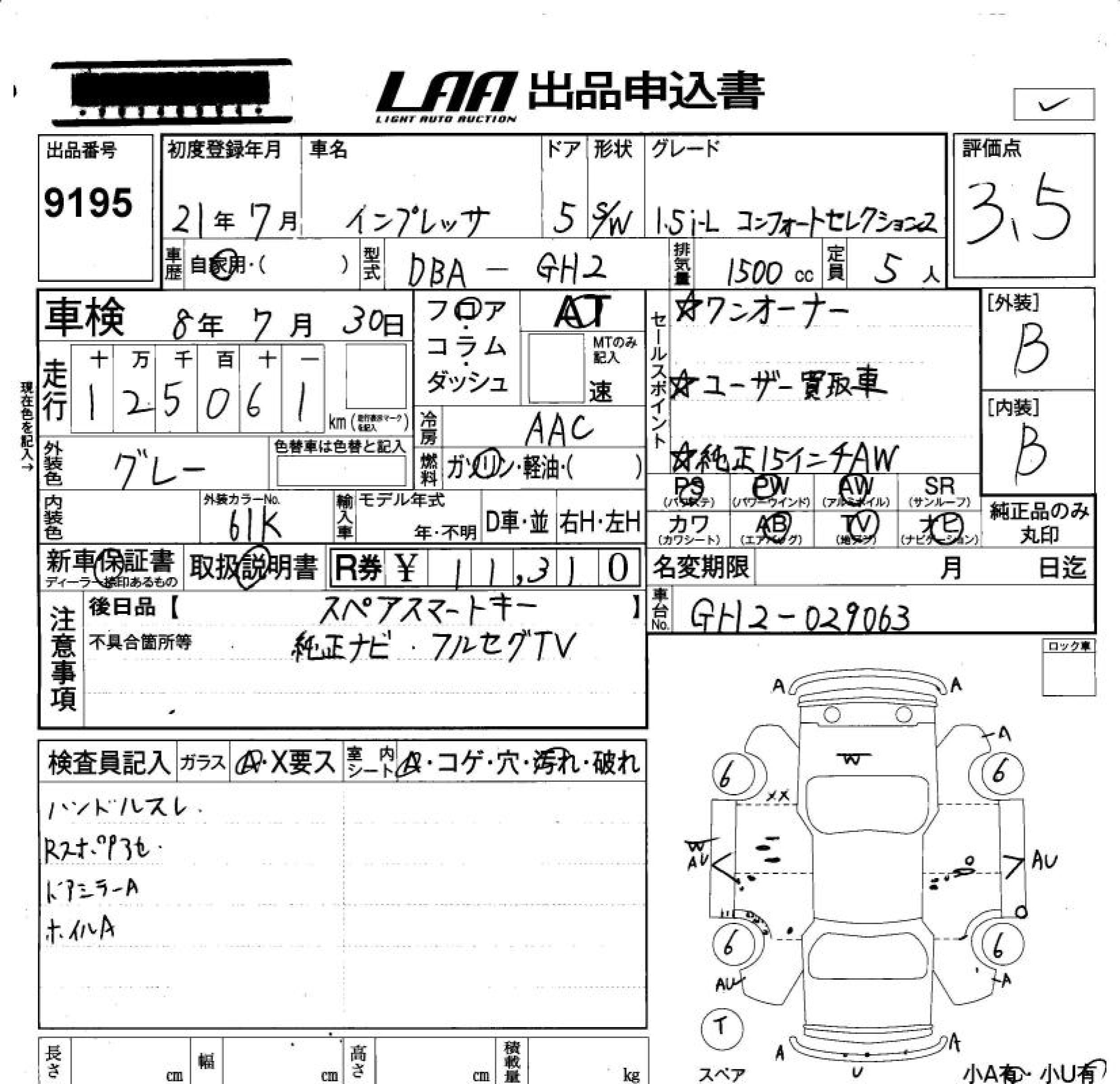 Subaru Impreza, 2009 года - Лот№9195 ★3.5