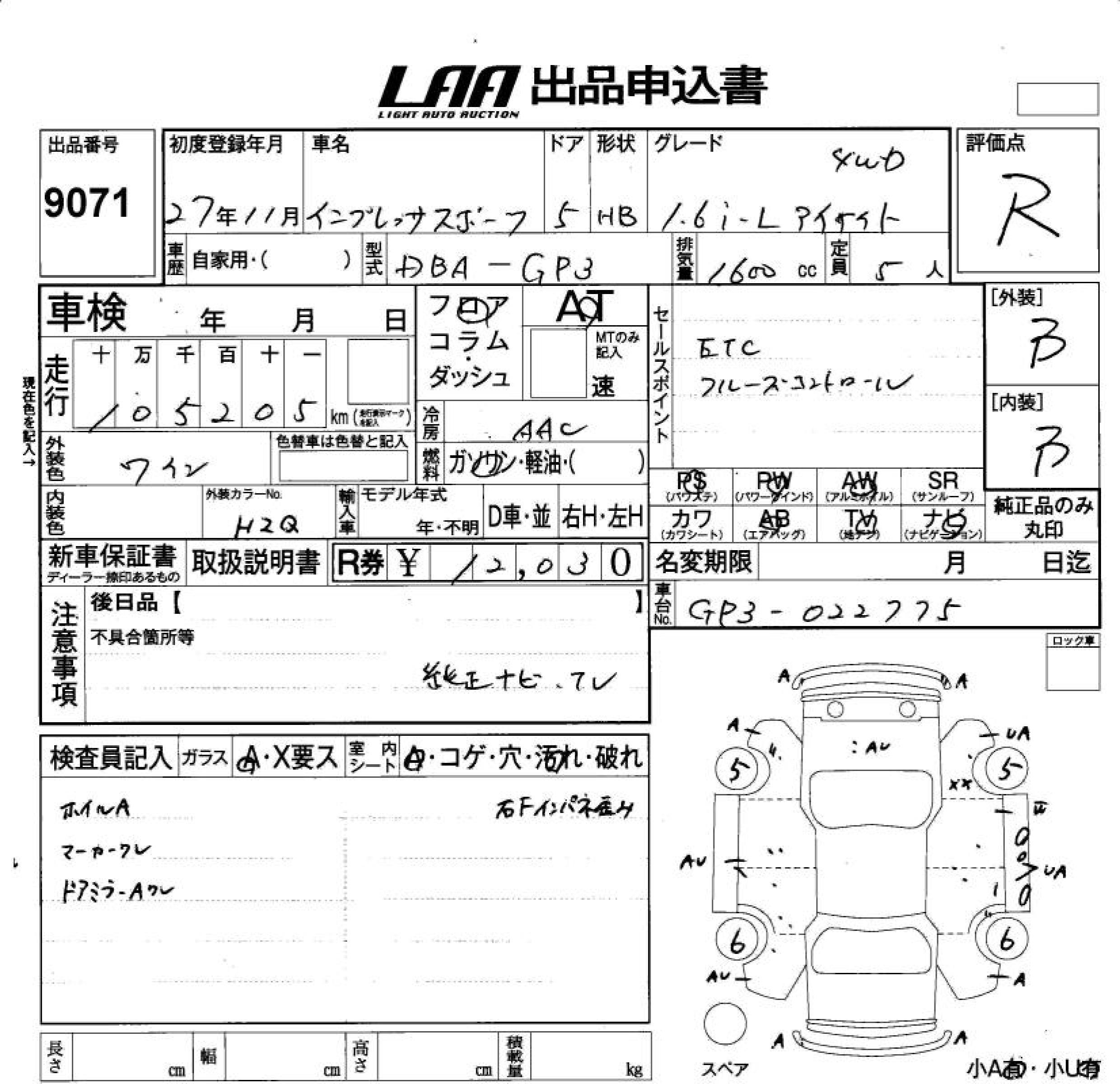 Subaru Impreza, 2015 года - Лот№9071 ★R