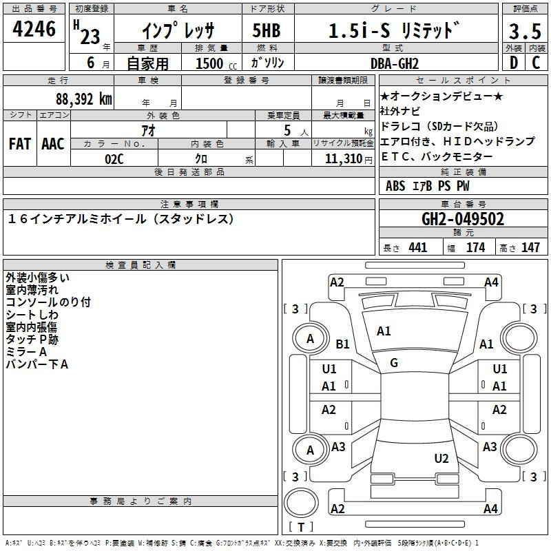 Subaru Impreza, 2011 года - Лот№4246 ★3.5