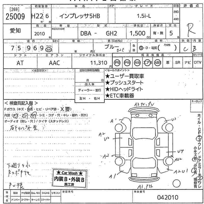 Subaru Impreza, 2010 года - Лот№25009 ★R