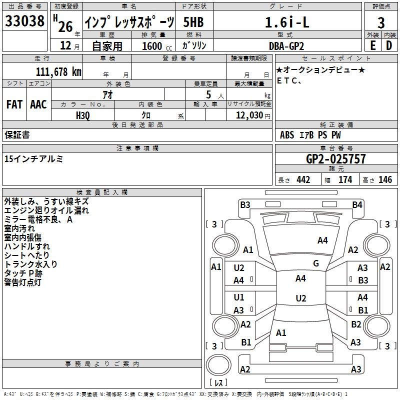 Subaru Impreza, 2014 года - Лот№33038 ★3