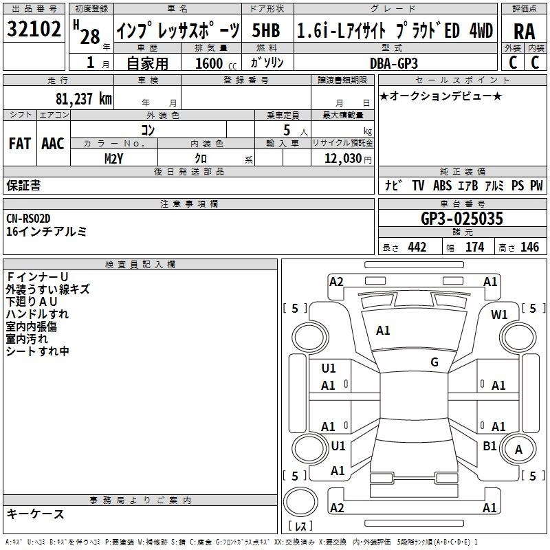 Subaru Impreza, 2016 года - Лот№32102 ★RA