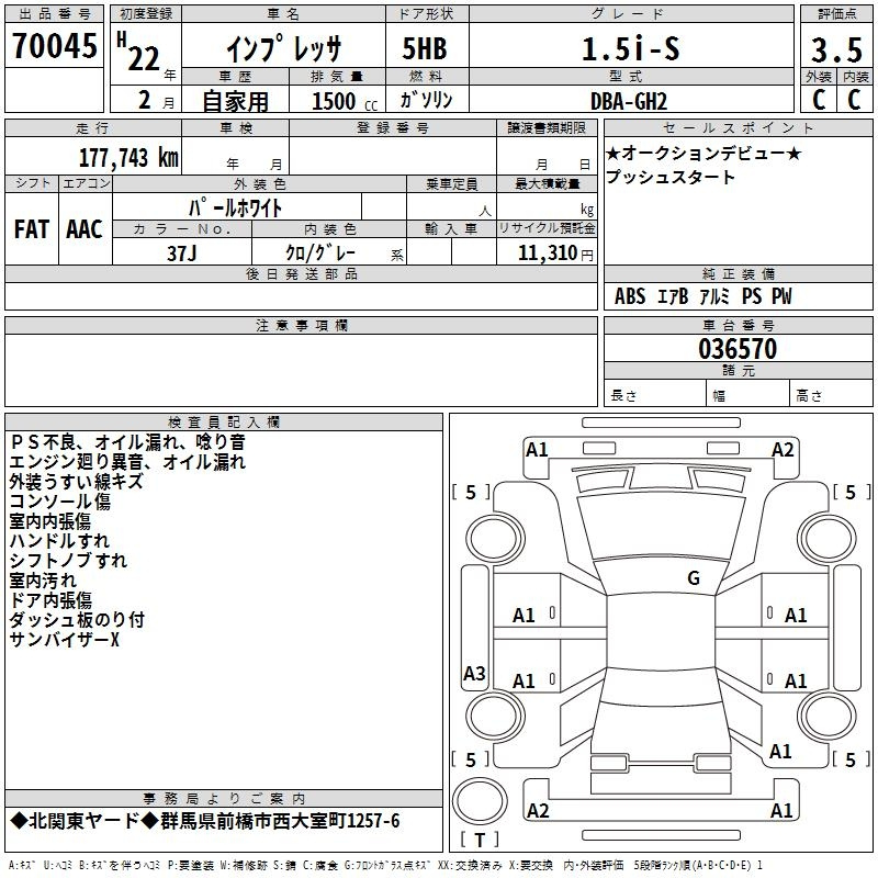 Subaru Impreza, 2010 года - Лот№70045 ★3.5