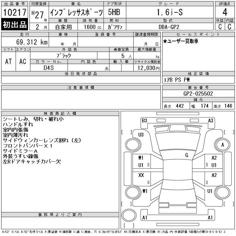 Subaru Impreza, 2015 года - Лот№10217 ★4