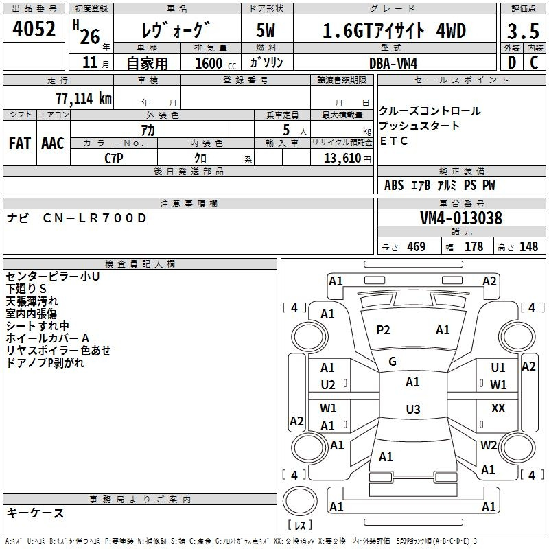 Subaru Levorg, 2014 года - Лот№4052 ★3.5