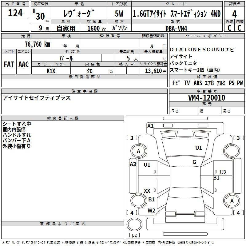 Subaru Levorg, 2018 года - Лот№124 ★4