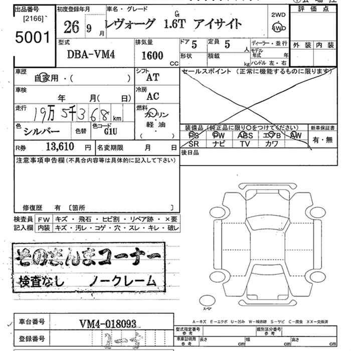 Subaru Levorg, 2014 года - Лот№5001 ★