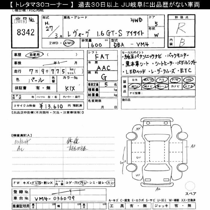 Subaru Levorg, 2015 года - Лот№8342 ★R