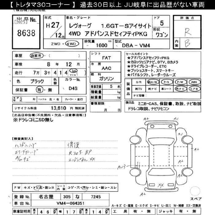 Subaru Levorg, 2015 года - Лот№8638 ★R