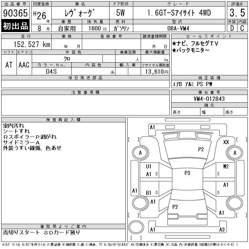 Subaru Levorg, 2014 года - Лот№90365 ★3.5