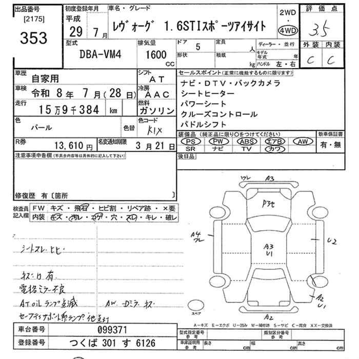 Subaru Levorg, 2017 года - Лот№353 ★3.5