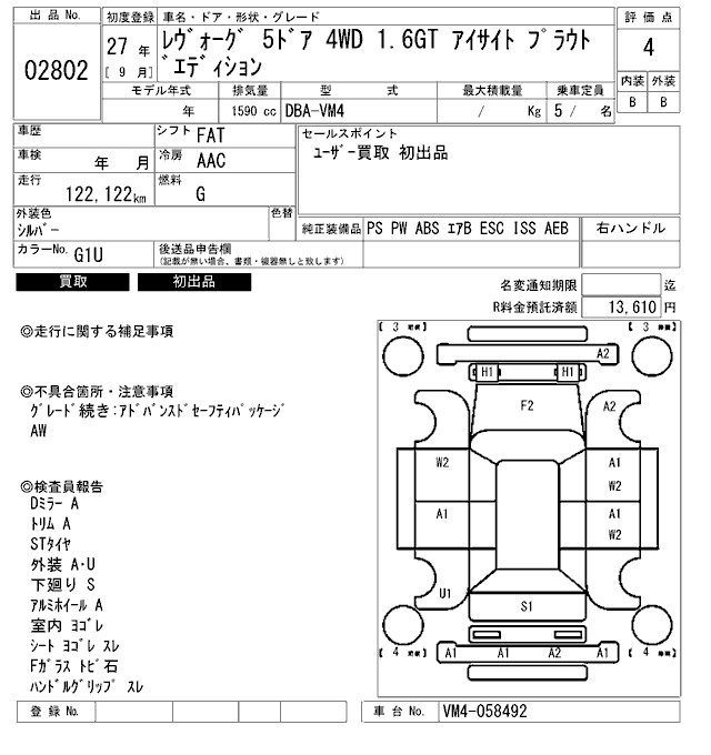 Subaru Levorg, 2015 года - Лот№2802 ★4