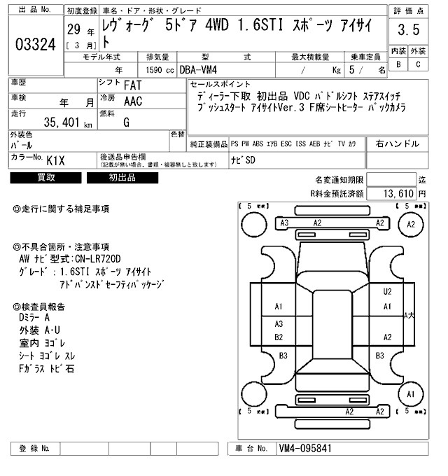 Subaru Levorg, 2017 года - Лот№3324 ★3.5