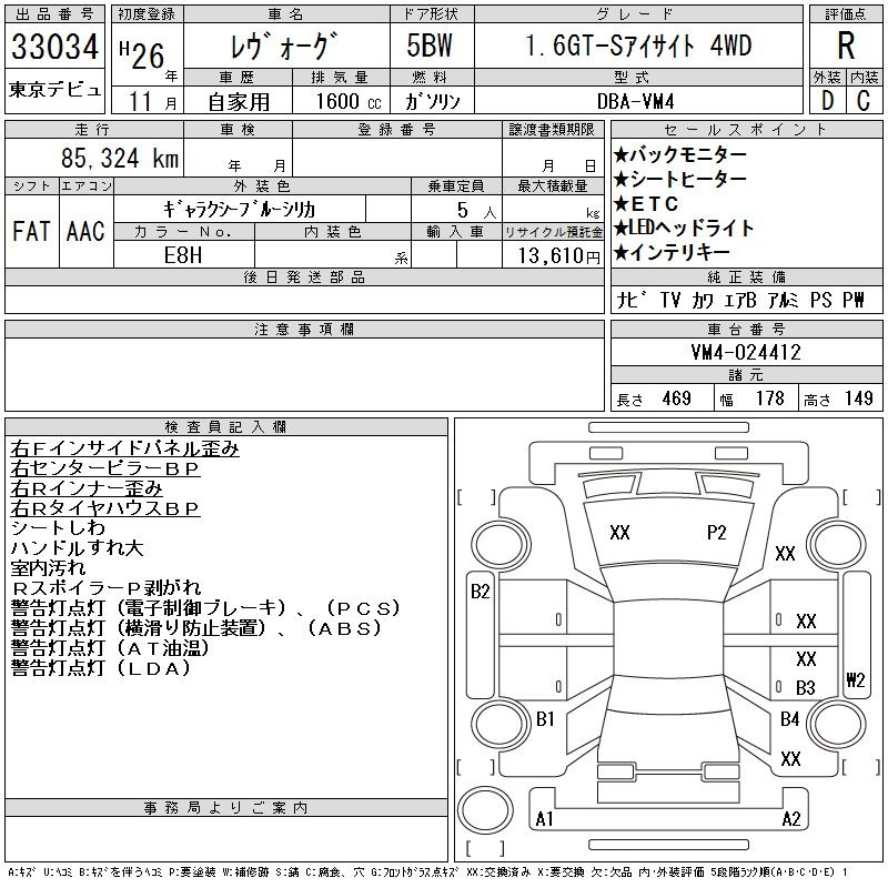 Subaru Levorg, 2014 года - Лот№33034 ★R