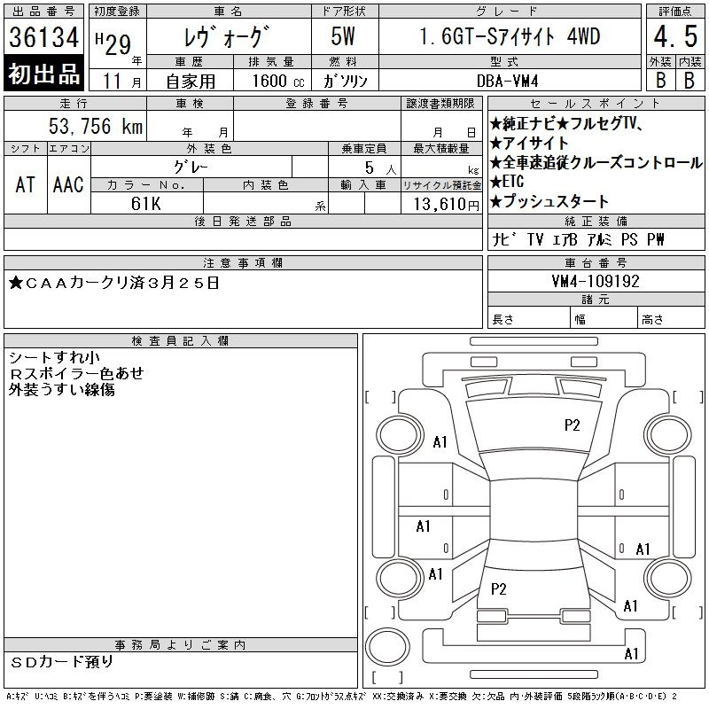Subaru Levorg, 2017 года - Лот№36134 ★4.5