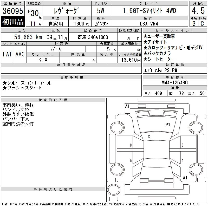 Subaru Levorg, 2018 года - Лот№36095 ★4.5
