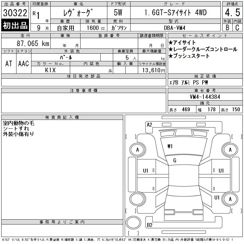 Subaru Levorg, 2019 года - Лот№30322 ★4.5