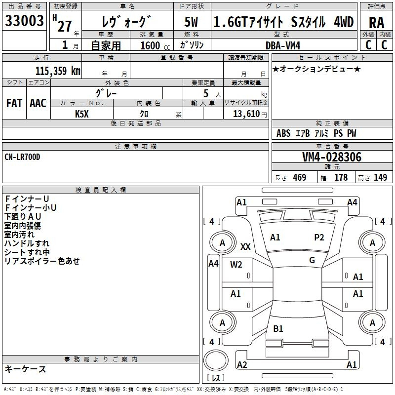 Subaru Levorg, 2015 года - Лот№33003 ★RA
