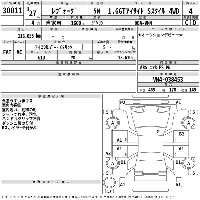 Subaru Levorg, 2015 года - Лот№30011 ★4