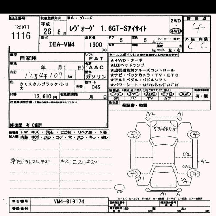Subaru Levorg, 2014 года - Лот№1116 ★4