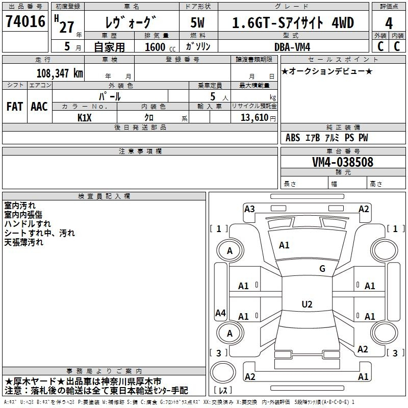 Subaru Levorg, 2015 года - Лот№74016 ★4