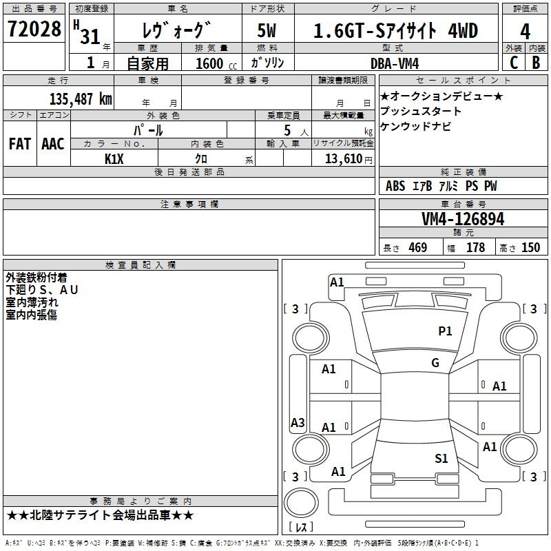 Subaru Levorg, 2019 года - Лот№72028 ★4