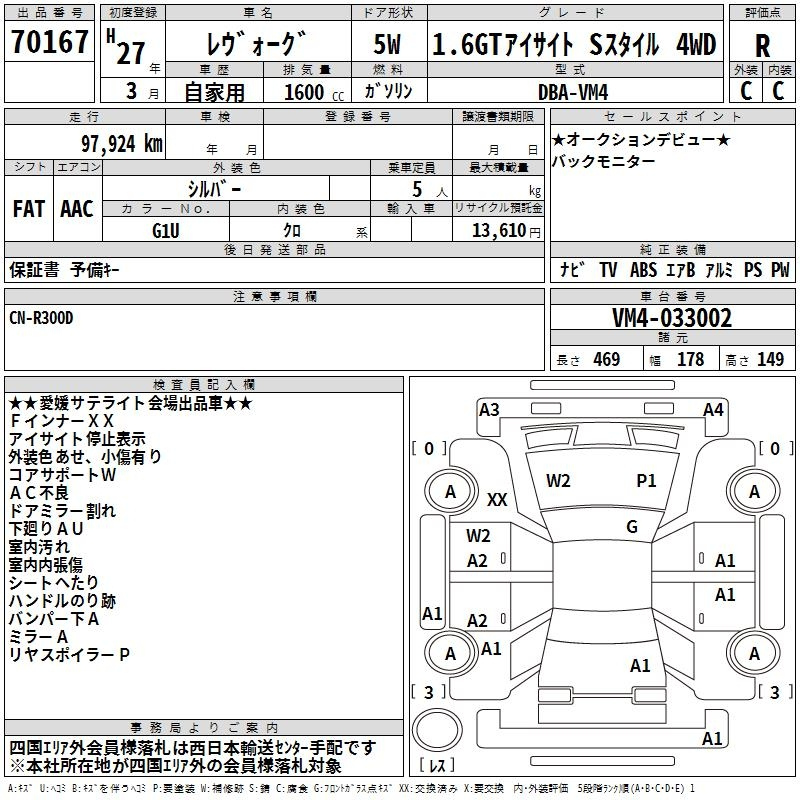 Subaru Levorg, 2015 года - Лот№70167 ★R