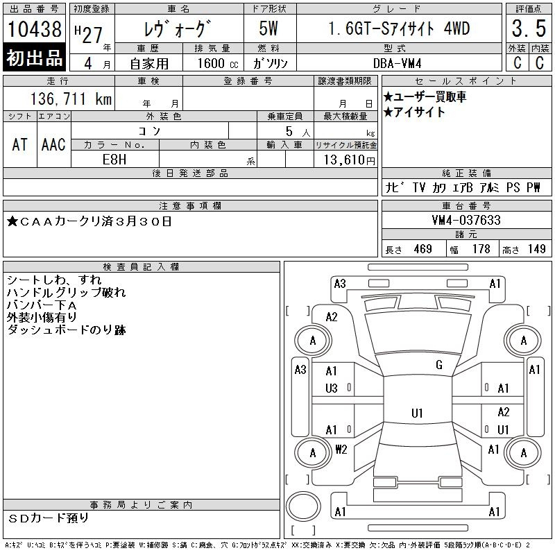 Subaru Levorg, 2015 года - Лот№10438 ★3.5