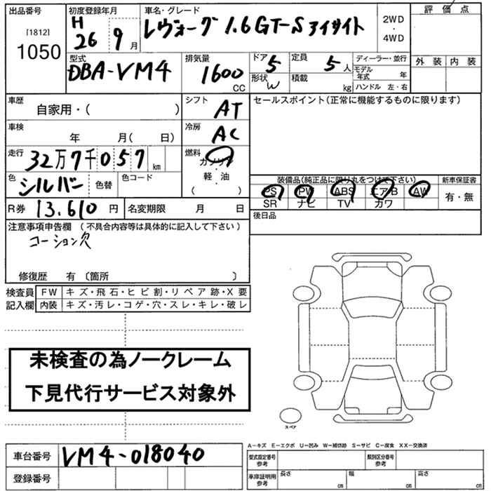 Subaru Levorg, 2014 года - Лот№1050 ★