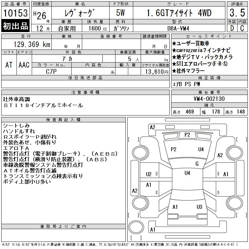 Subaru Levorg, 2014 года - Лот№10153 ★3.5