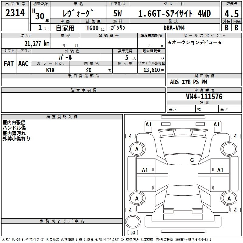 Subaru Levorg, 2018 года - Лот№2314 ★4.5