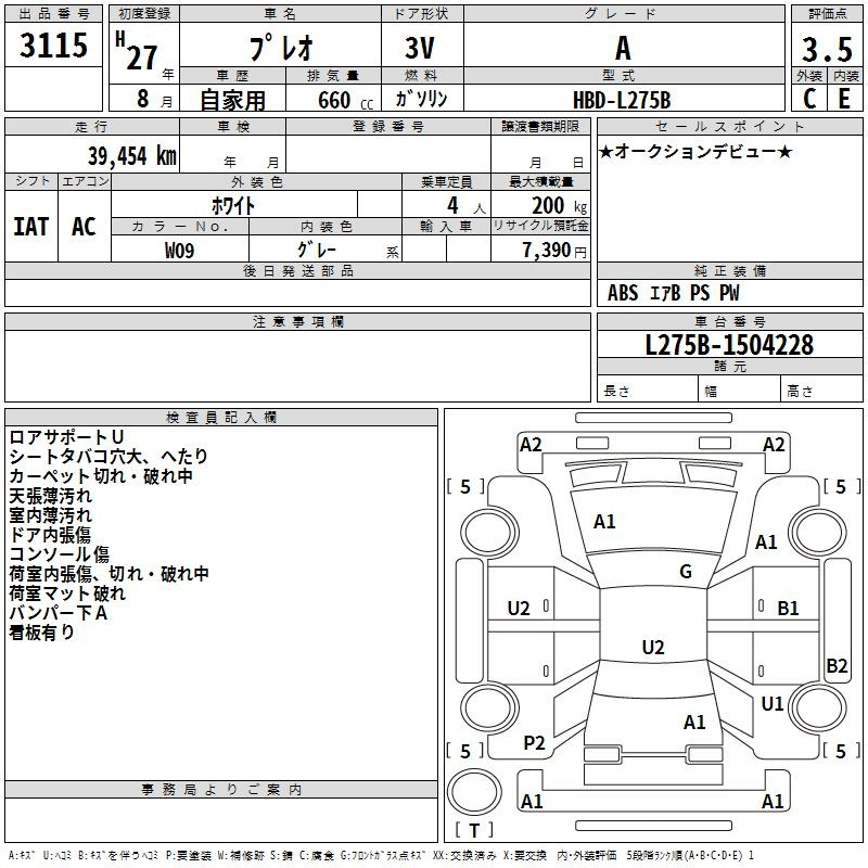 Subaru Pleo, 2015 года - Лот№3115 ★3.5
