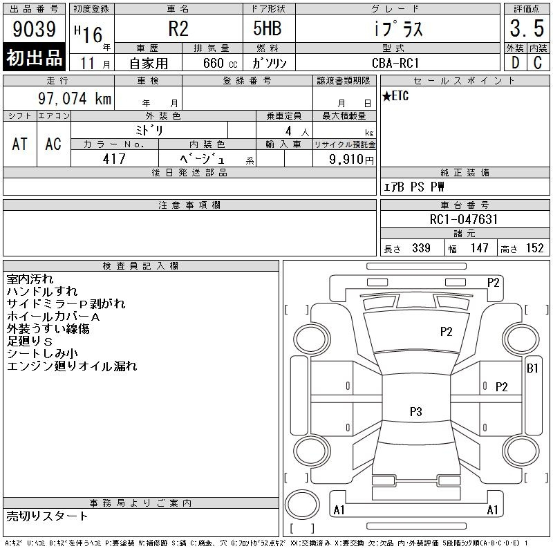 Subaru R2, 2004 года - Лот№9039 ★3.5
