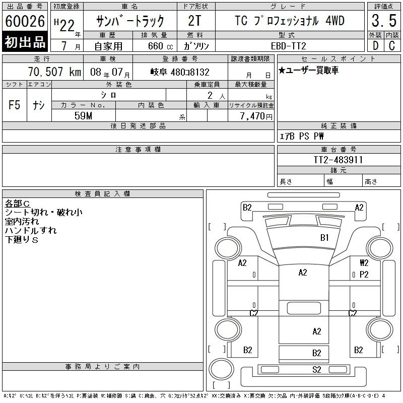 Subaru Sambar, 2010 года - Лот№60026 ★3.5