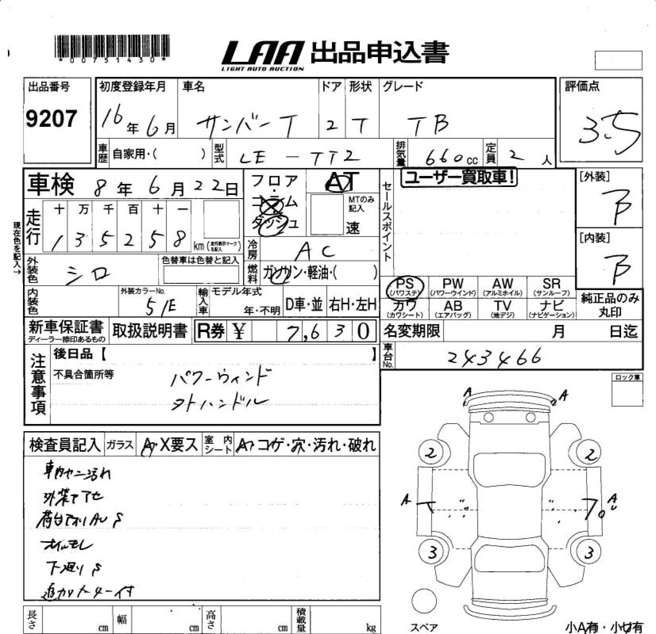 Subaru Sambar, 2004 года - Лот№9207 ★3.5