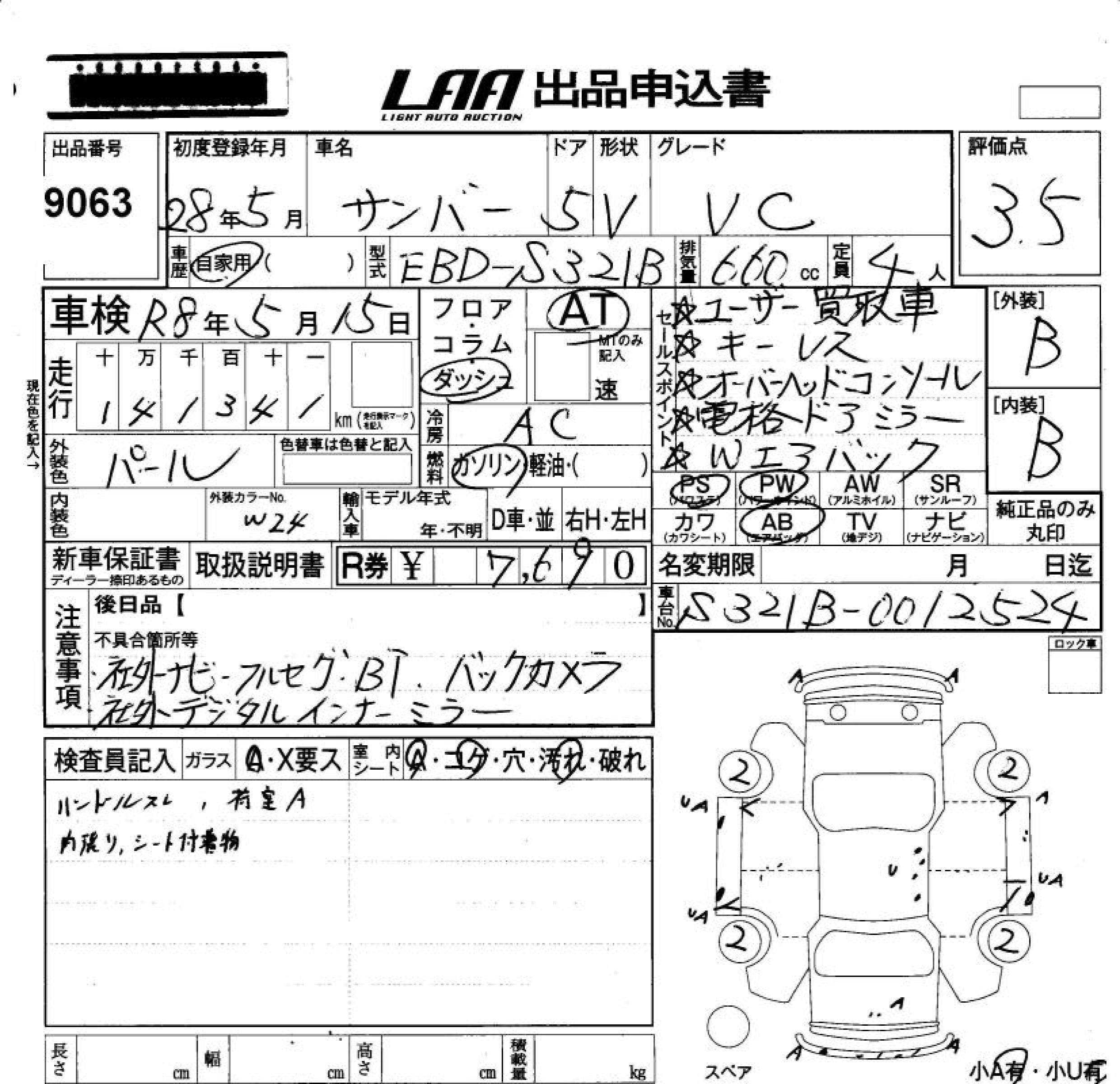 Subaru Sambar, 2016 года - Лот№9063 ★3.5