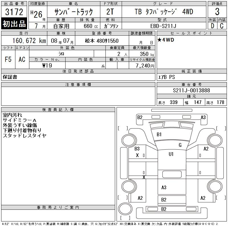 Subaru Sambar, 2014 года - Лот№3172 ★3