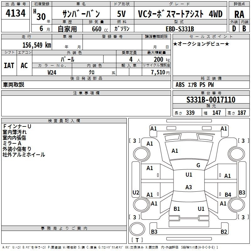 Subaru Sambar, 2018 года - Лот№4134 ★RA