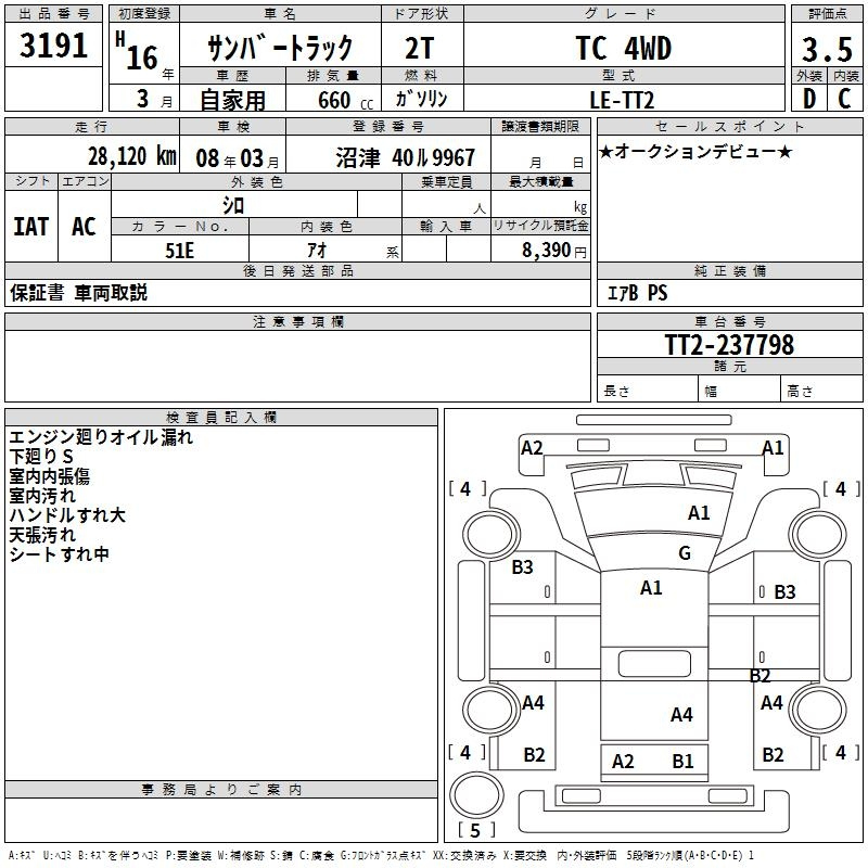 Subaru Sambar, 2004 года - Лот№3191 ★3.5