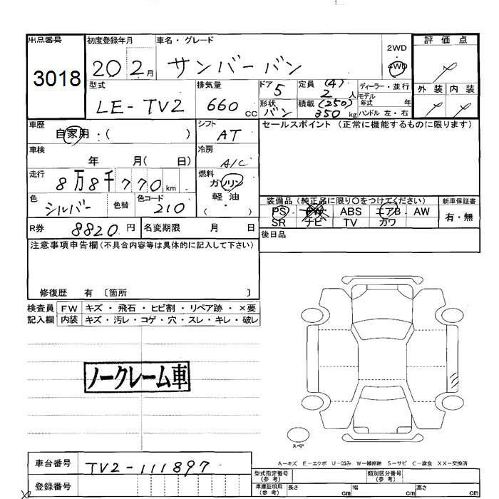 Subaru Sambar, 2008 года - Лот№3018 ★-