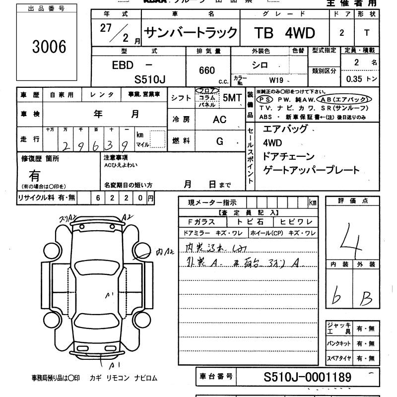Subaru Sambar, 2015 года - Лот№3006 ★4