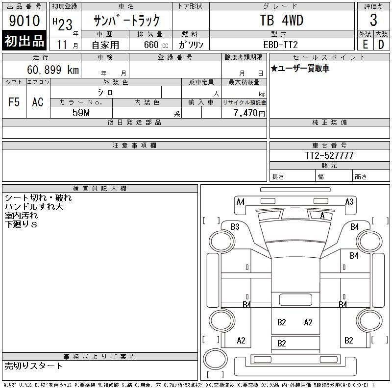 Subaru Sambar, 2011 года - Лот№9010 ★3