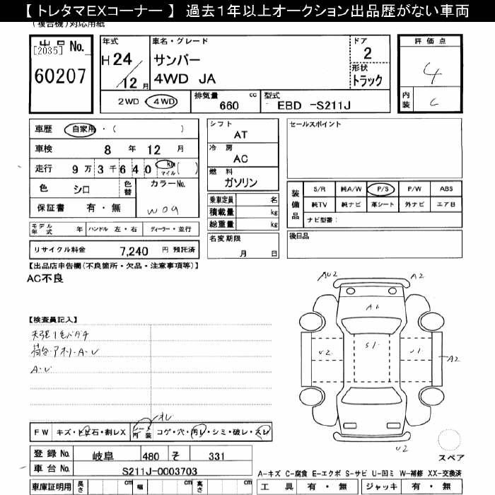 Subaru Sambar, 2012 года - Лот№60207 ★4