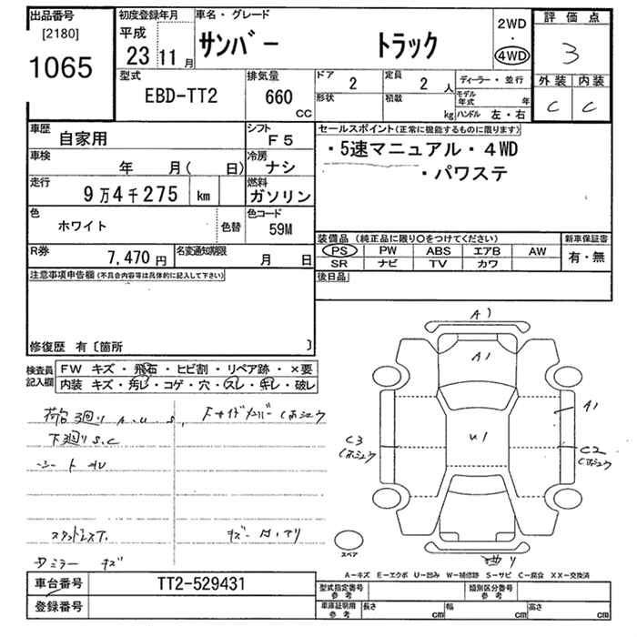 Subaru Sambar, 2011 года - Лот№1065 ★3