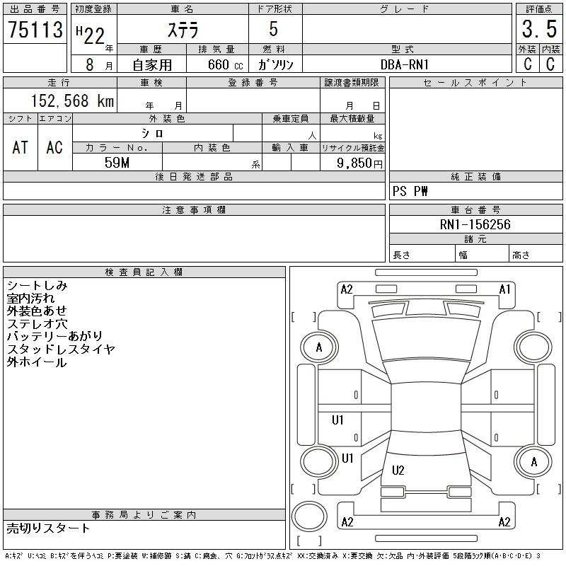 Subaru Stella, 2010 года - Лот№75113 ★3.5