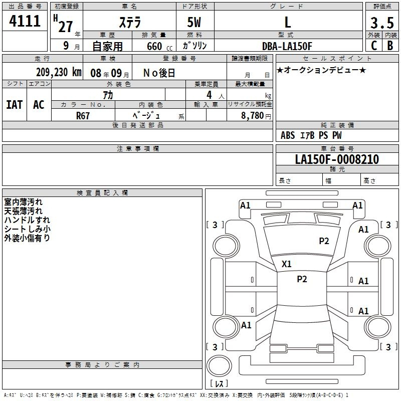 Subaru Stella, 2015 года - Лот№4111 ★3.5