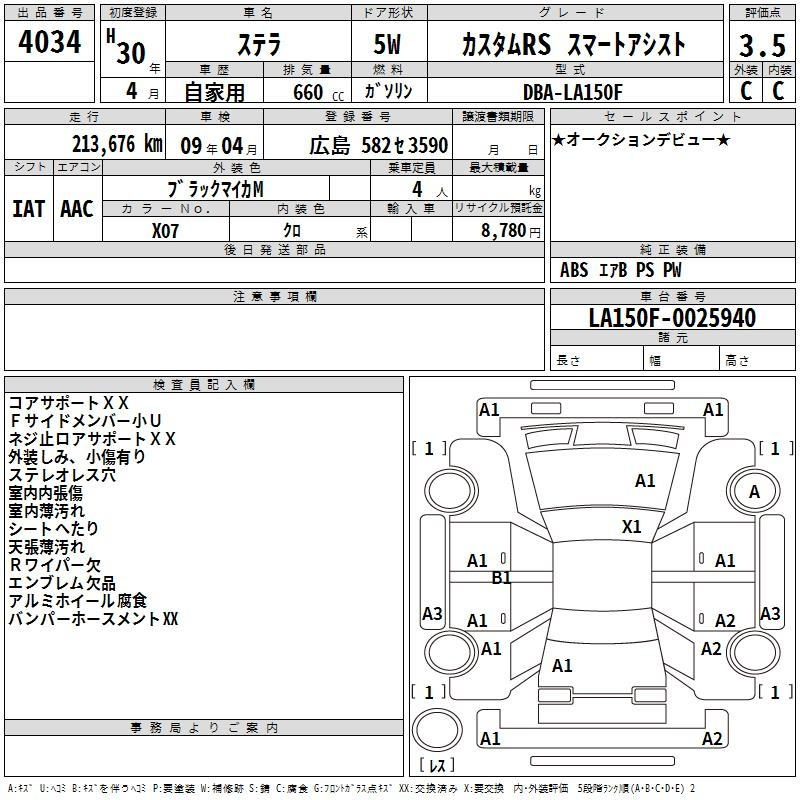 Subaru Stella, 2018 года - Лот№4034 ★3.5