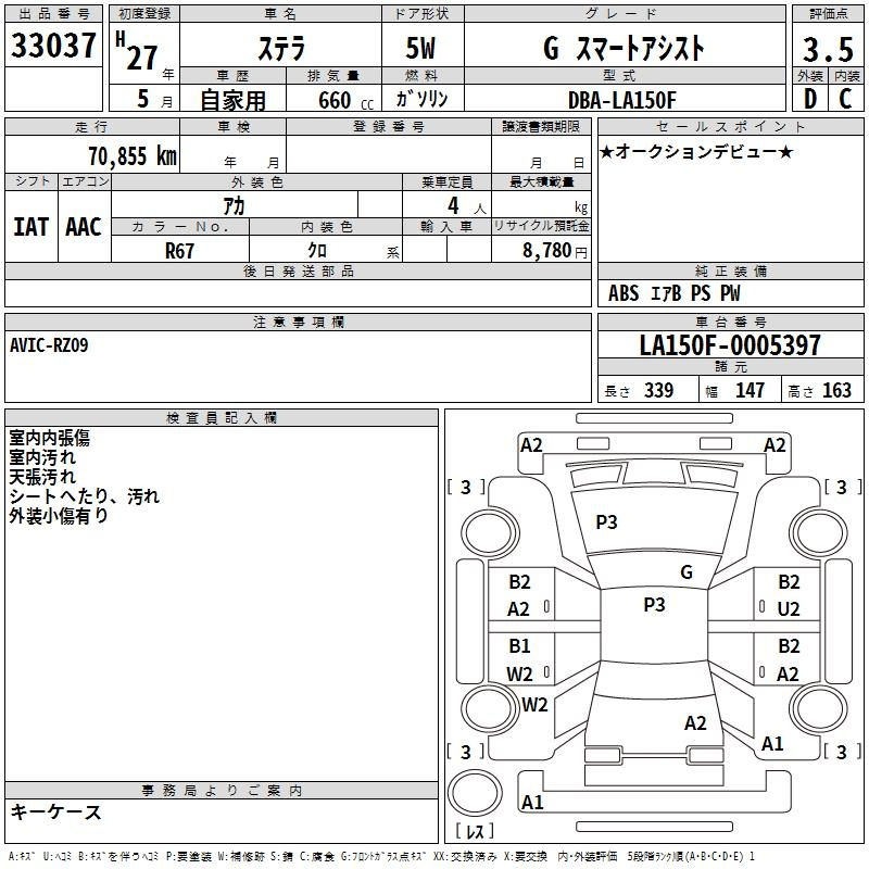 Subaru Stella, 2015 года - Лот№33037 ★3.5
